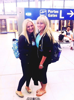 saturday: we arrived in paris at about 6:00am. we were planning on being to our hotel by 8:00. oh boy were we wrong. so it started with us being led to what we thought was the line to go through customs. we finally got to the front of it and realized we were in line for security to go back on a plane. so we got out of line and went to find the real customs line. we finally found it and waited in line again. we got to the front and the security guard looked at our passports and sent us on our way. he didn't stamp them though and we were a little nervous this would end with us being thrown in jail or getting deported for illegally being in the country. so we found a police officer who escorted us back through the line and got our passports stamped for us. then came finding our bags. we looked on the screen and didn't see our flight so we decided to go down to baggage claim and ask. they told us where to go, but by the time we got there, the belt had stopped and we looked around and saw that our bags were at the top of what seemed to be a mountain (we were just being dramatic, it was at the top of the baggage carousel). we had to climb up and grab our huge bags and pull them down then we were finally on our way. after what had to be at least a half hour walk with over 200 pounds of luggage each, we got to the train. we bought our metro passes and went to get on the train. as we were trying to get through the gate, it kept rejecting our tickets. little did we know we had to have a separate ticket to get into the city. so we went back out, bought tickets, and were finally headed towards the city.